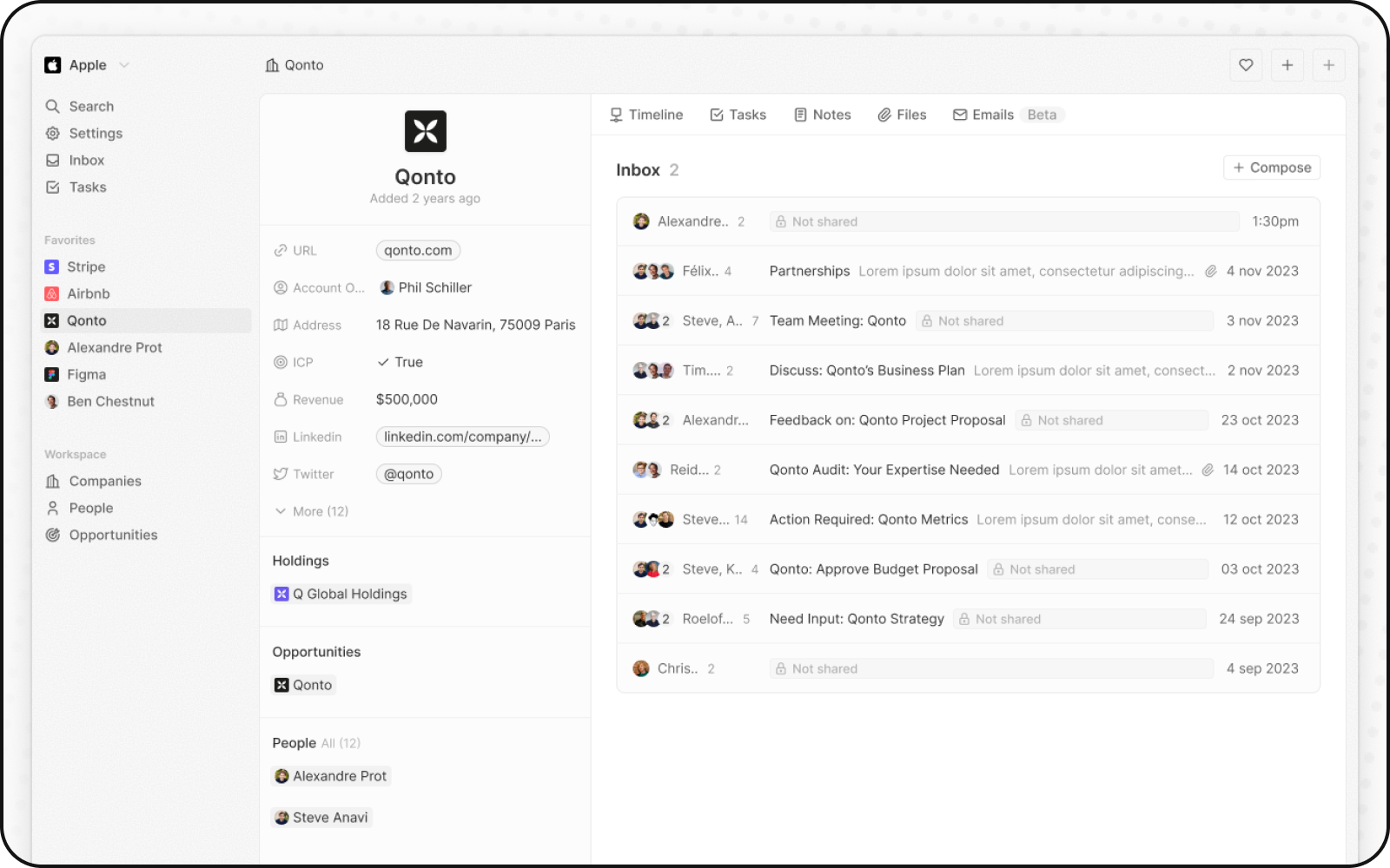 - 機会:この機会にリンクされた会社に関連するメールスレッドにアクセス。 この機会での個人のメールスレッドはまだ表示されません。 この機会での個人のメールスレッドはまだ表示されません。 この機会での個人のメールスレッドはまだ表示されません。 この機会での個人のメールスレッドはまだ表示されません。