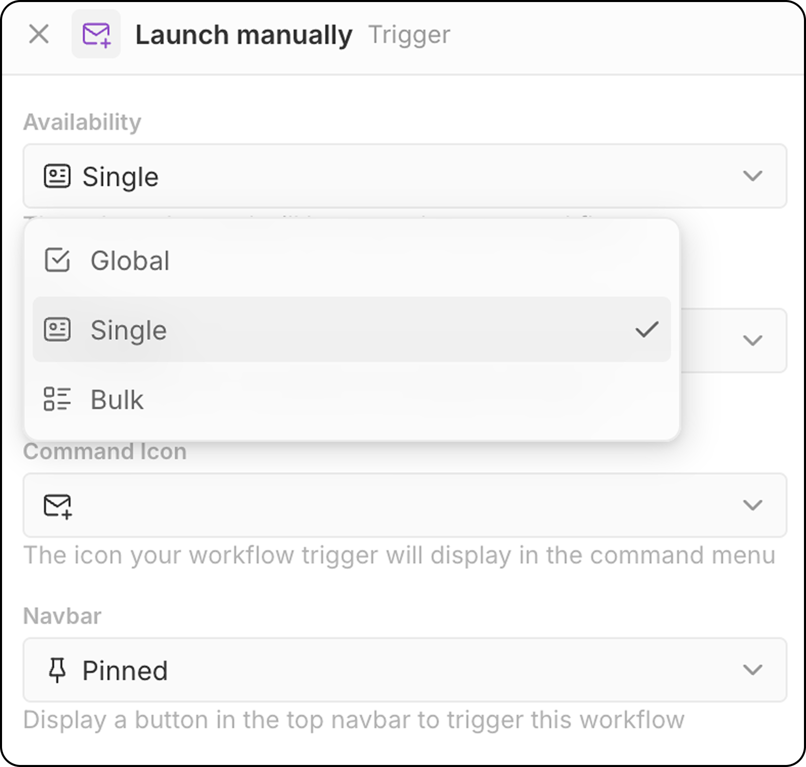 Global: Bu iş akışını tetiklemek için bir kayda gerek yoktur. İş akışı, komut menüsü