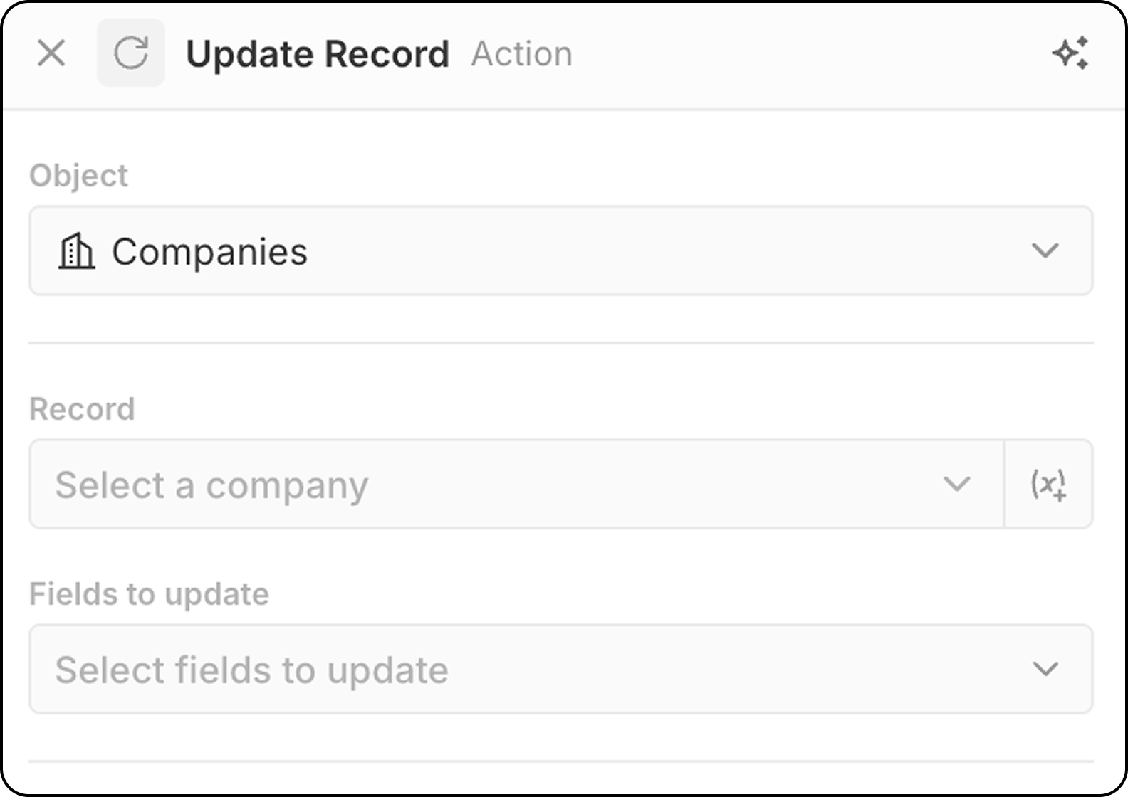 (x+). You cannot search for the record based on different criteria at this stage. If you’ve not yet identified the record, add aSearch Recordstep before thisUpdate Recordstep.